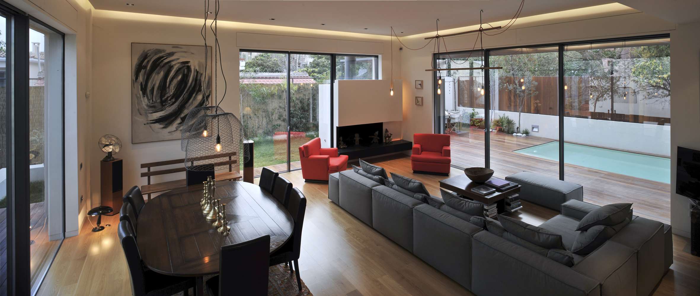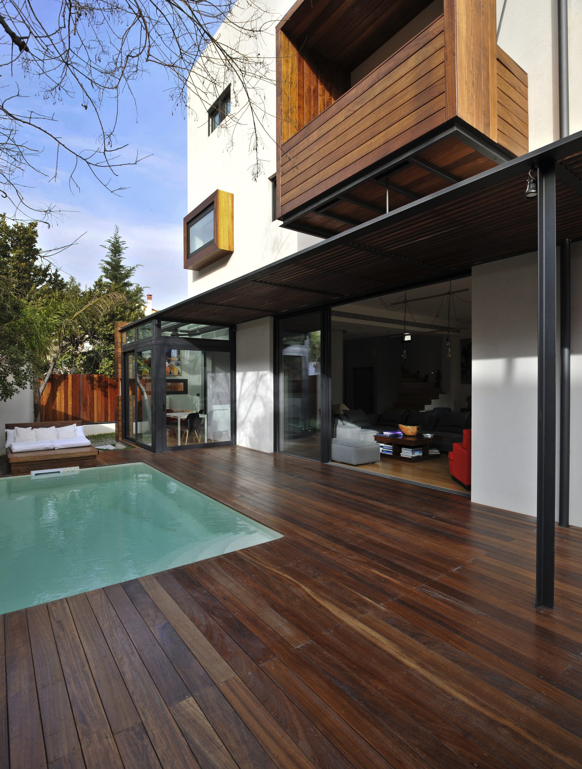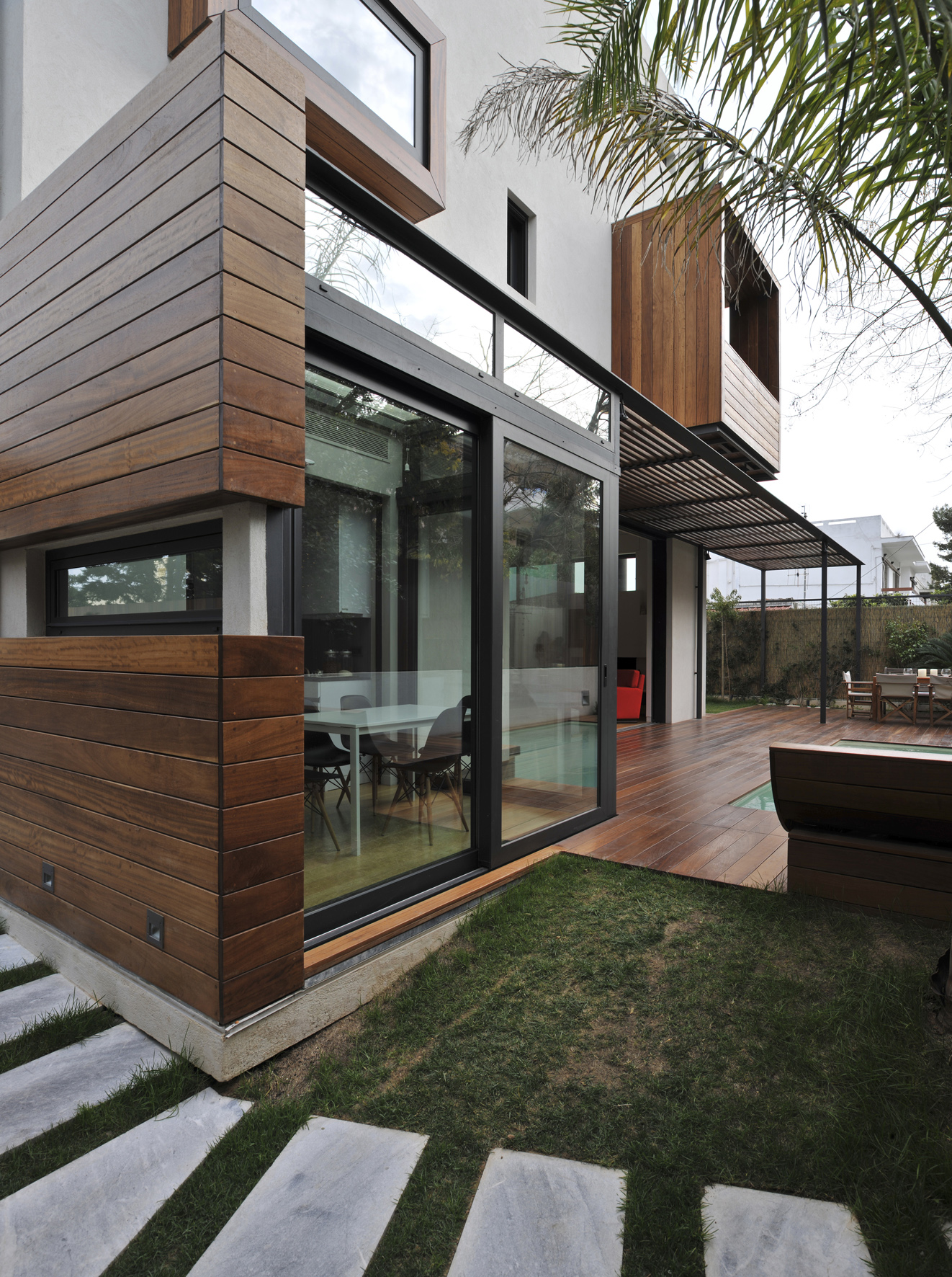 Αποφασίσαμε να δώσουμε μια πιο οικεία αίσθηση στην κατοικία δημιουργώντας μια πιο πολυεπίπεδη κατασκευή και χρησιμοποιώντας το ξύλο σαν στοιχείο επένδυσης των σημαντικών αλλαγών που επιχειρήσαμε στην όψη.