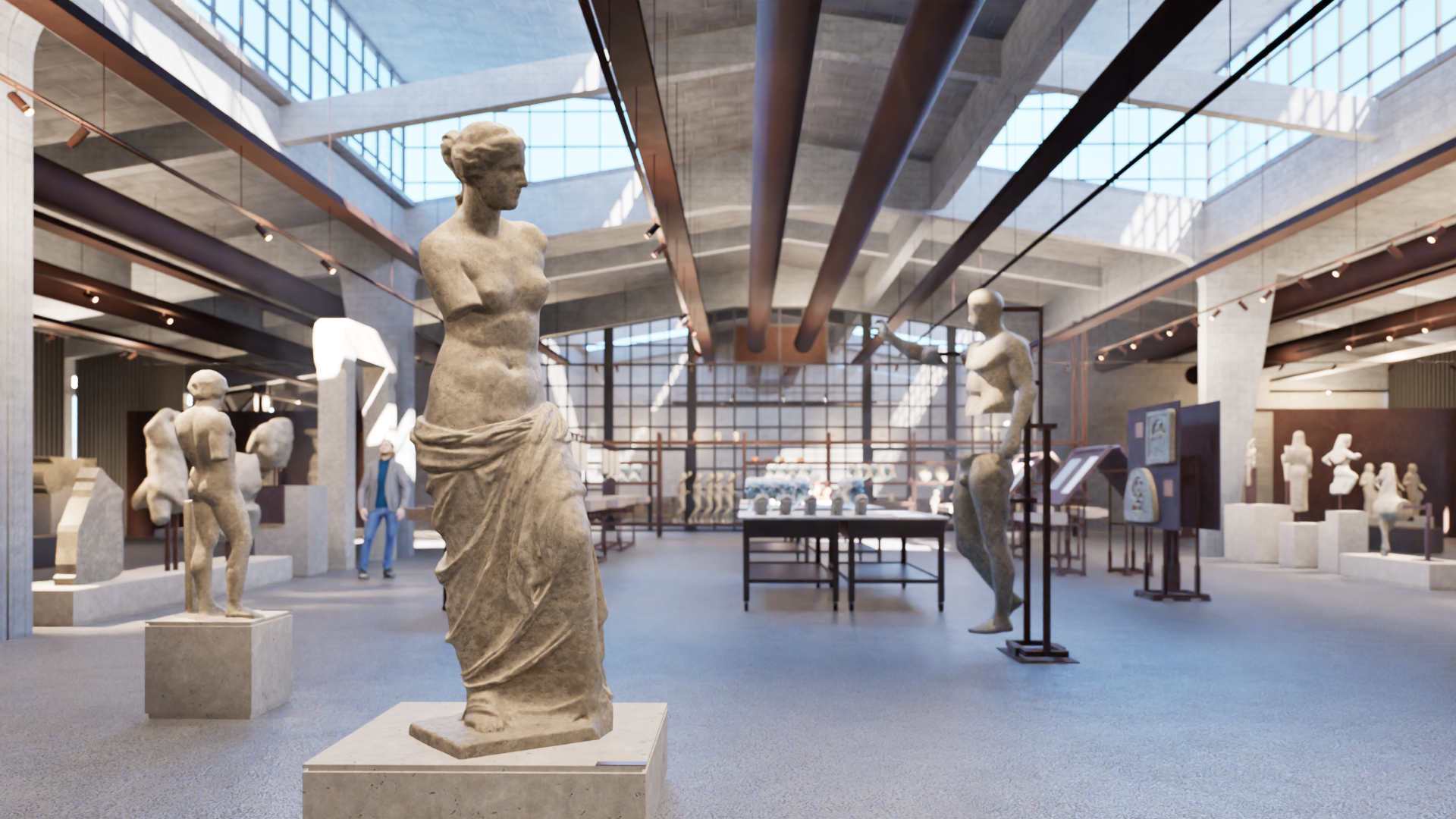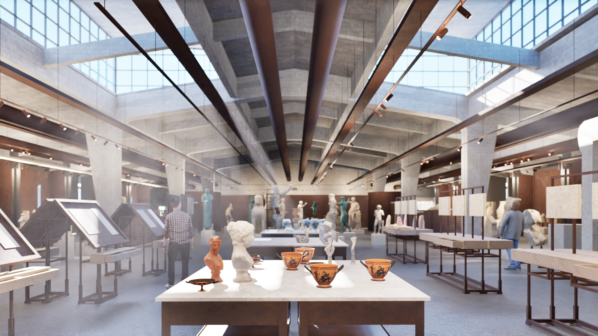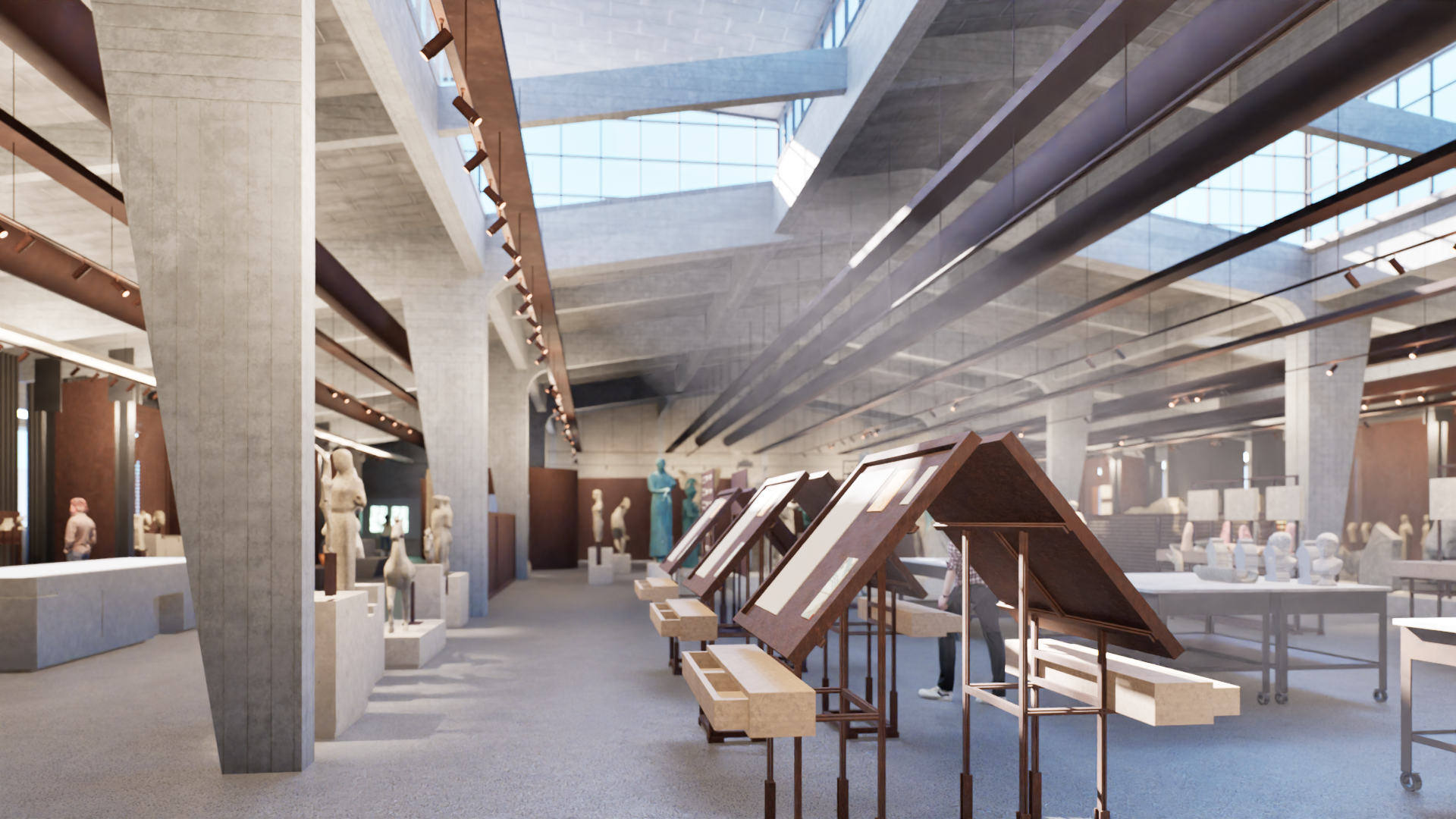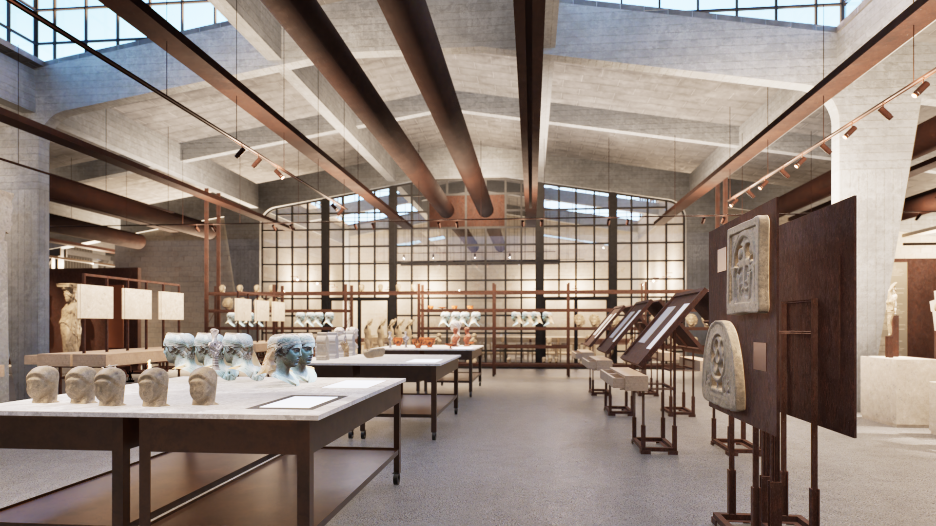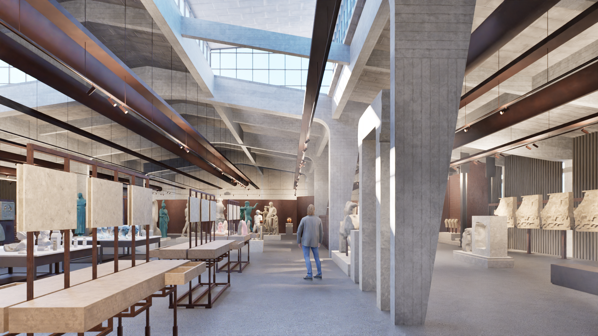 Πρόκειται για τον σχεδιασμό ενός μουσείου αντιγράφων. Το πρώτο μουσείο της Αθήνας όπου ο επισκέπτης επιτρέπεται να αγγίξει τα αγάλματα, συνεπώς βιώνει τον χώρο με τελείως διαφορεικτό τρόπο. Τα μεταλλικά διαχωριστικά στοιχεία των διαδρόμων, κατασκευάζονται από μεταλλικό πλαίσι από κοιλοδοκούς διαστάσεων 60x100x3mm, στο οποίο προσαρτάται συγκολλητή διάτρητη λαμαρίνα κοπής laser και πάχους 3mm. Η στήριξη των κατασκευών γίνεται με μεταλλικό ποτήρι που βιδώνεται στην πλάκα του ορόφου. Η μεταλλική αυτή κατασκευή βάφεται με μια ειδική βαφή, η οποία δίνει την αίσθηση του corten.