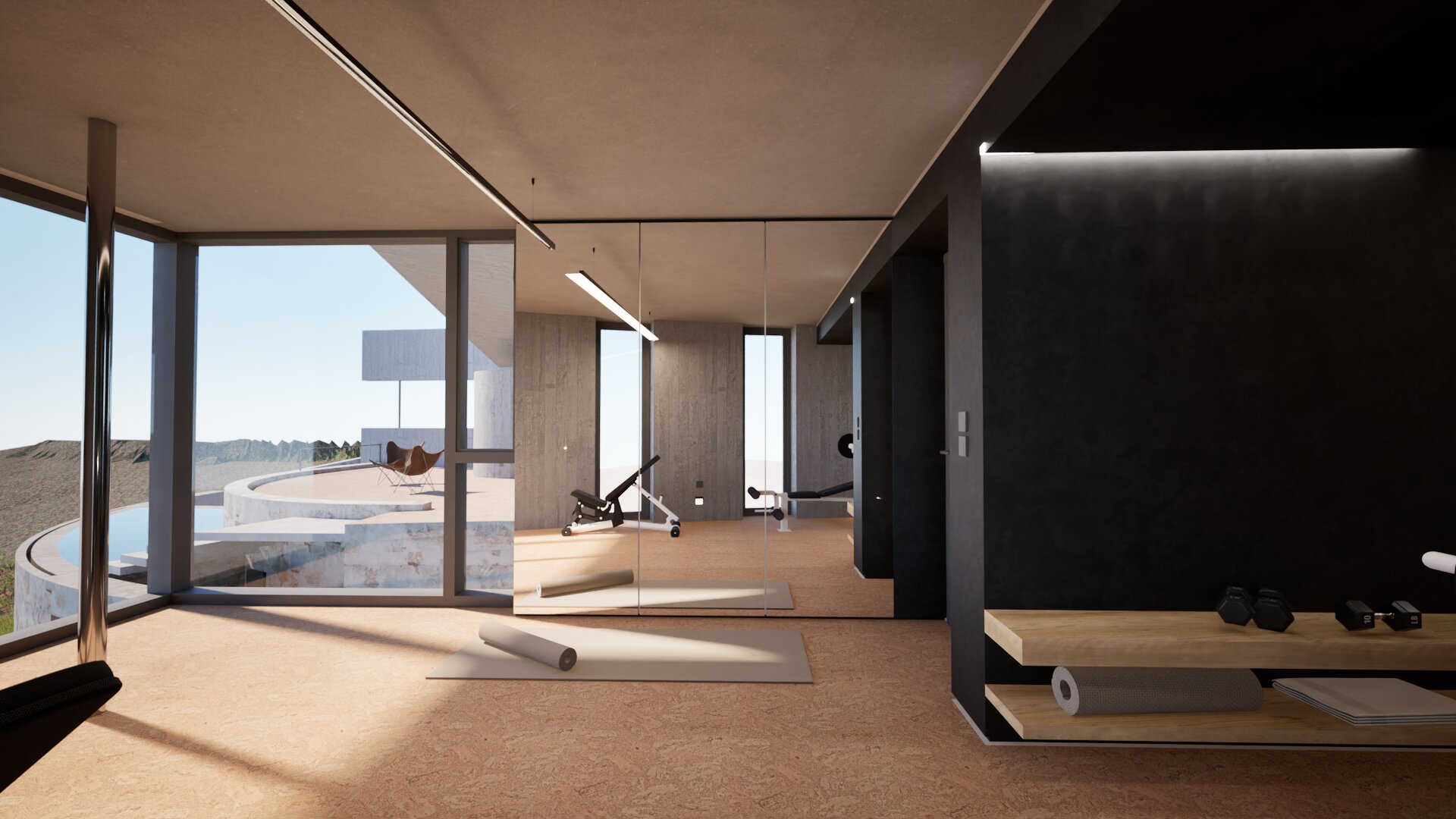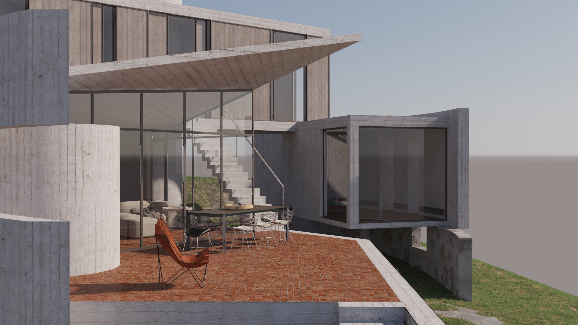 The building will be two stories high with a basement, which, due to the slope of the ground and its use, becomes partially above ground (semi-basement) in some areas. The upper floor exists only in the part of the building where the first level is a basement. Therefore, at no point does the building become three stories high, and it does not exceed the maximum allowable height. The structural framework of the building, the slabs, and the foundation will be made of reinforced concrete. The slabs may be constructed using a composite system, and the ceilings will feature gypsum board false ceilings. The exterior walls will consist of exposed concrete, stone cladding, and wooden board cladding. The flooring around the swimming pool and beneath the semi-outdoor areas will be made of ceramic tiles. Landscaping will be provided in the outdoor area of the building. The pergolas will be constructed using metal elements.