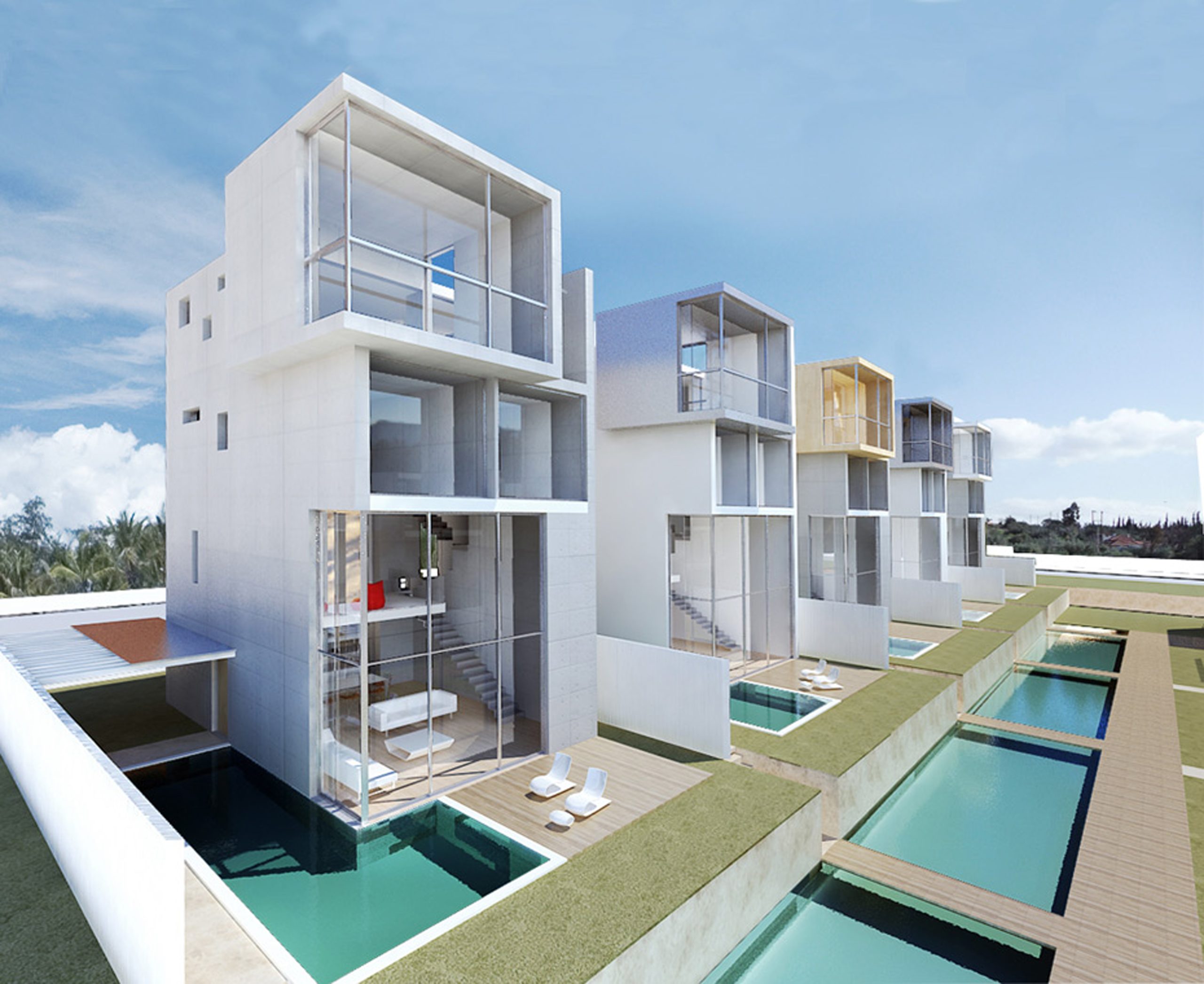 Located in the southern suburb of athens near the sea, this project is split into 3 plots. In two plots 9 buildings that share the same language. Three tower houses, three double unit buildings, and three single unit buildings. The complexity of the program is also transmitted to the aesthetic composition of each of them getting as a result a vibrant and attractive unified whole.